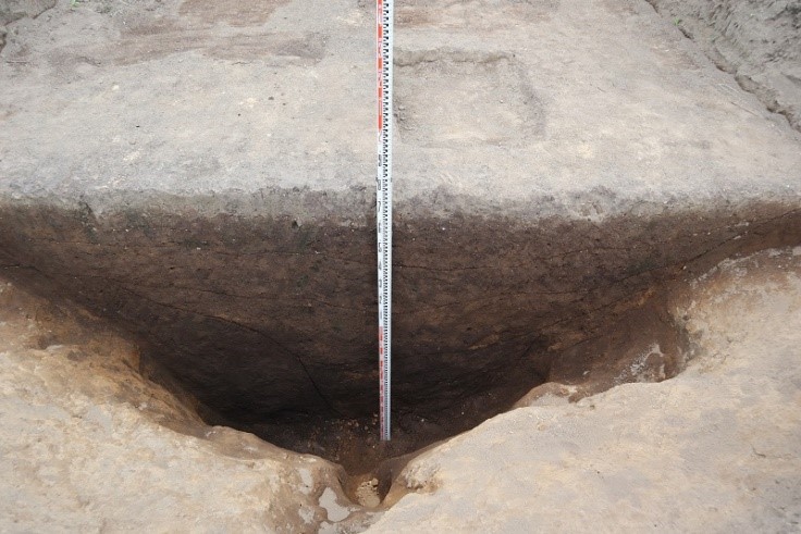 4区は竪穴住居跡13軒、溝跡2条を検出しました。