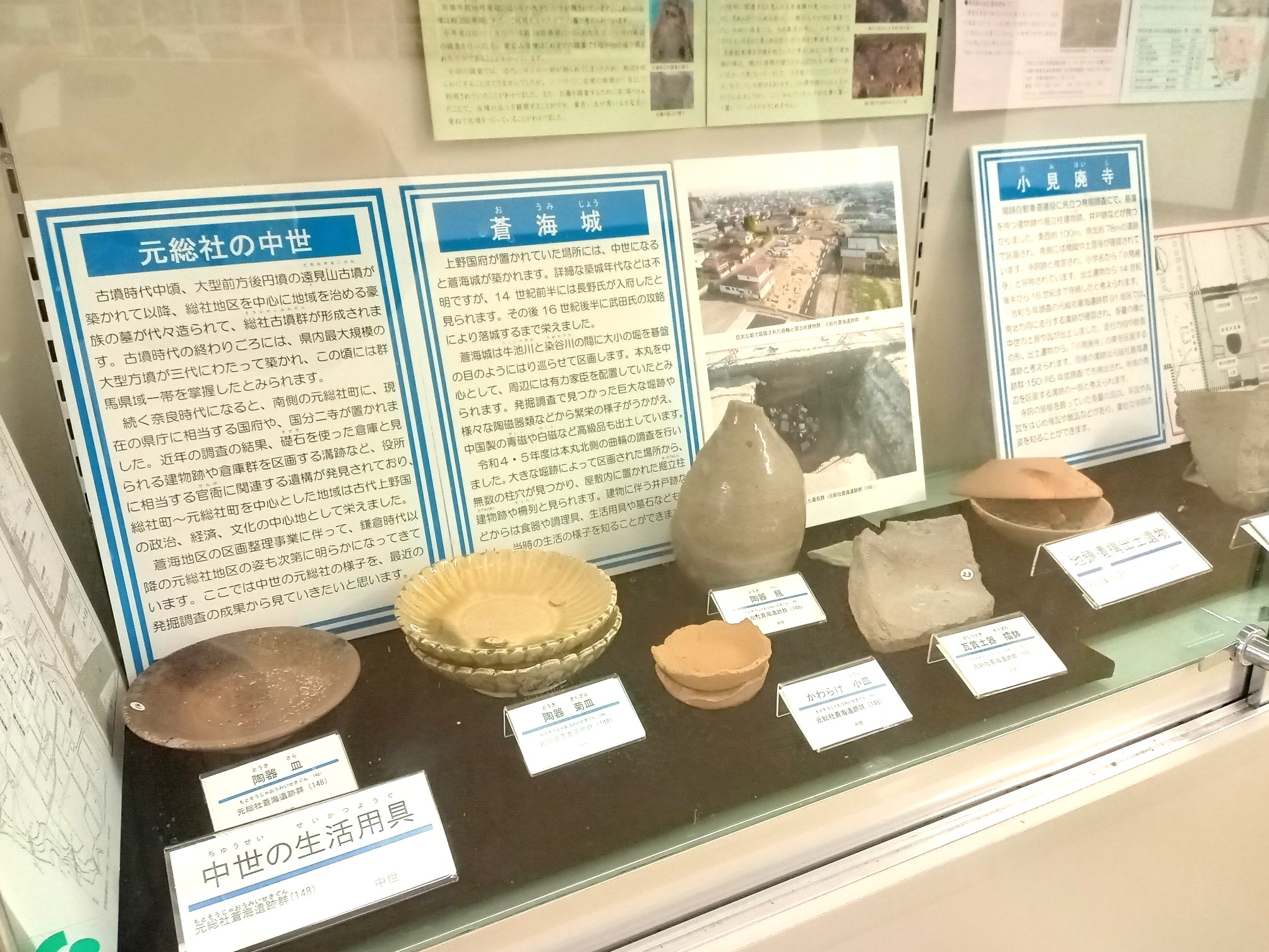 元総社市民サービスセンターでは、周辺の上野国府跡や元総社蒼海遺跡群から出土した遺物を展示しており、市民サービスセンターを利用する皆様に地域の歴史を知ってもらう取り組みを行っています。