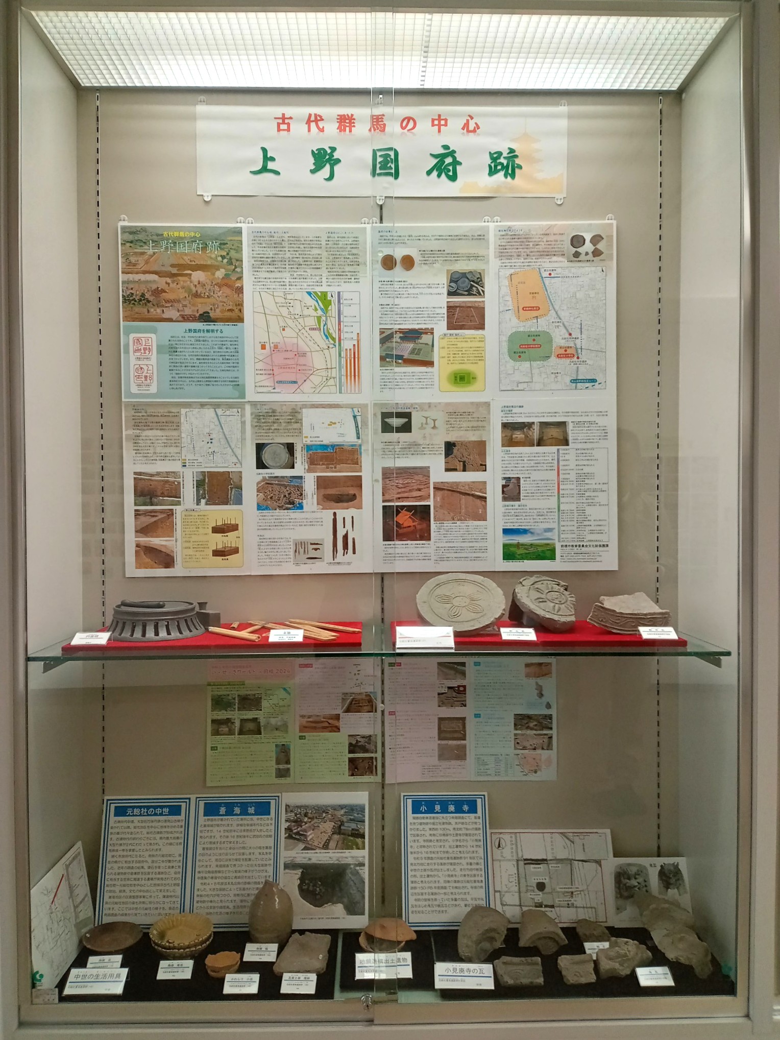 12月5日に今まで展示していた遺物から、最近発掘調査を行って出土した遺物に展示品を一新しました。あわせて上野国府に関する解説パネルも最新のものに差し替えを行い、発掘調査を行う中で新しく判明した事柄を皆様にお伝えできるようにいたしました。