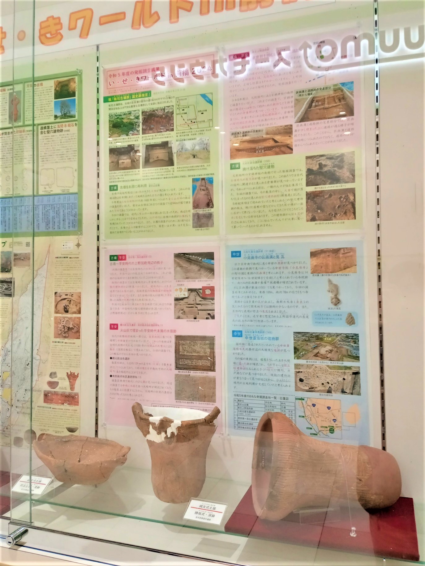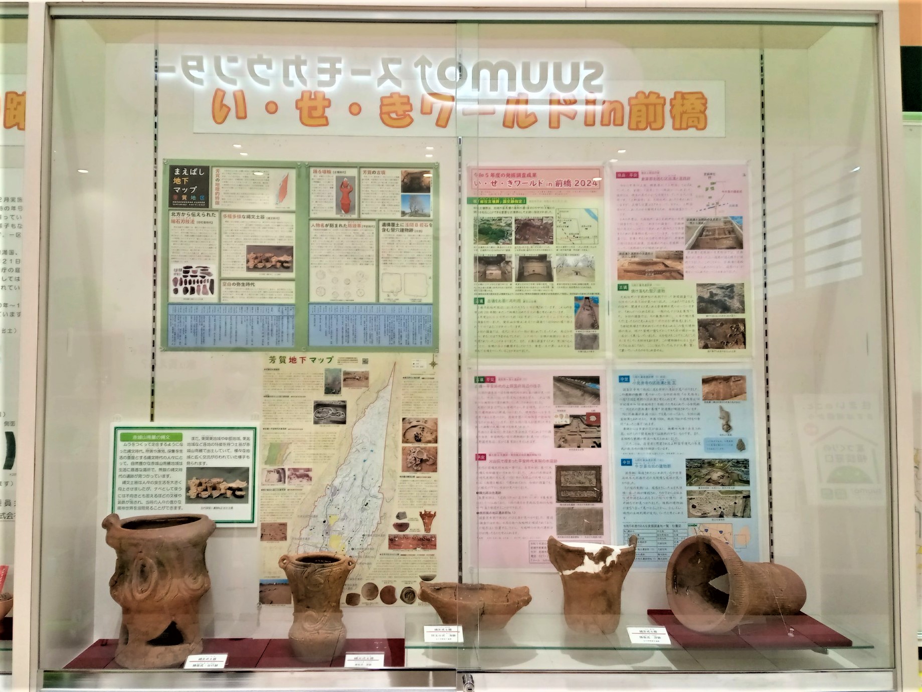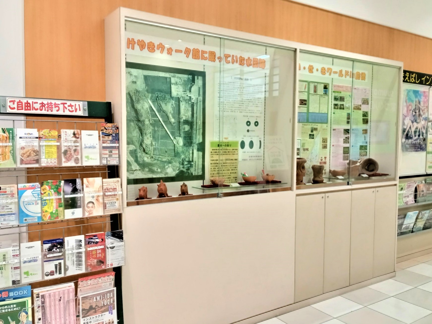 文京町二丁目の「けやきウォーク前橋」1階では前橋市内の遺跡から発掘された遺物や、けやきウォークを建設する際に発見された遺跡に関する展示を行っています。