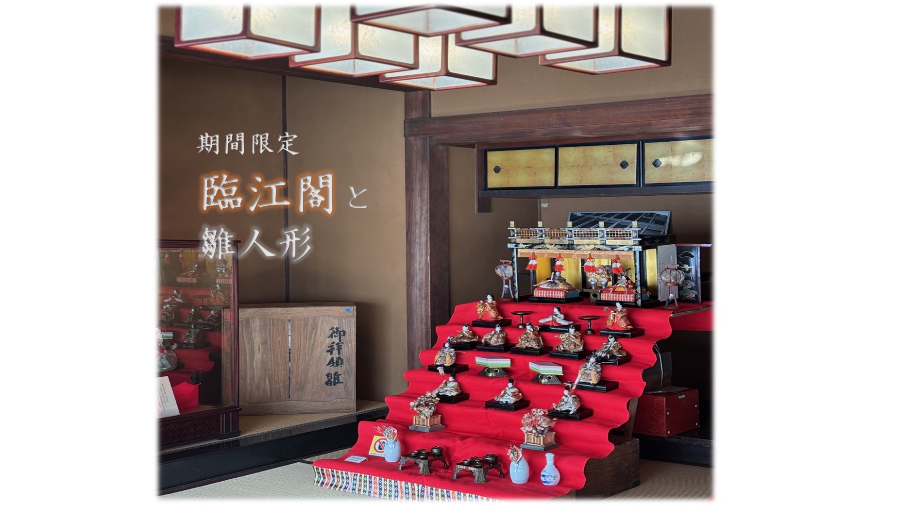 上記の期間、臨江閣の本館1階で雛人形の展示を開催中です。