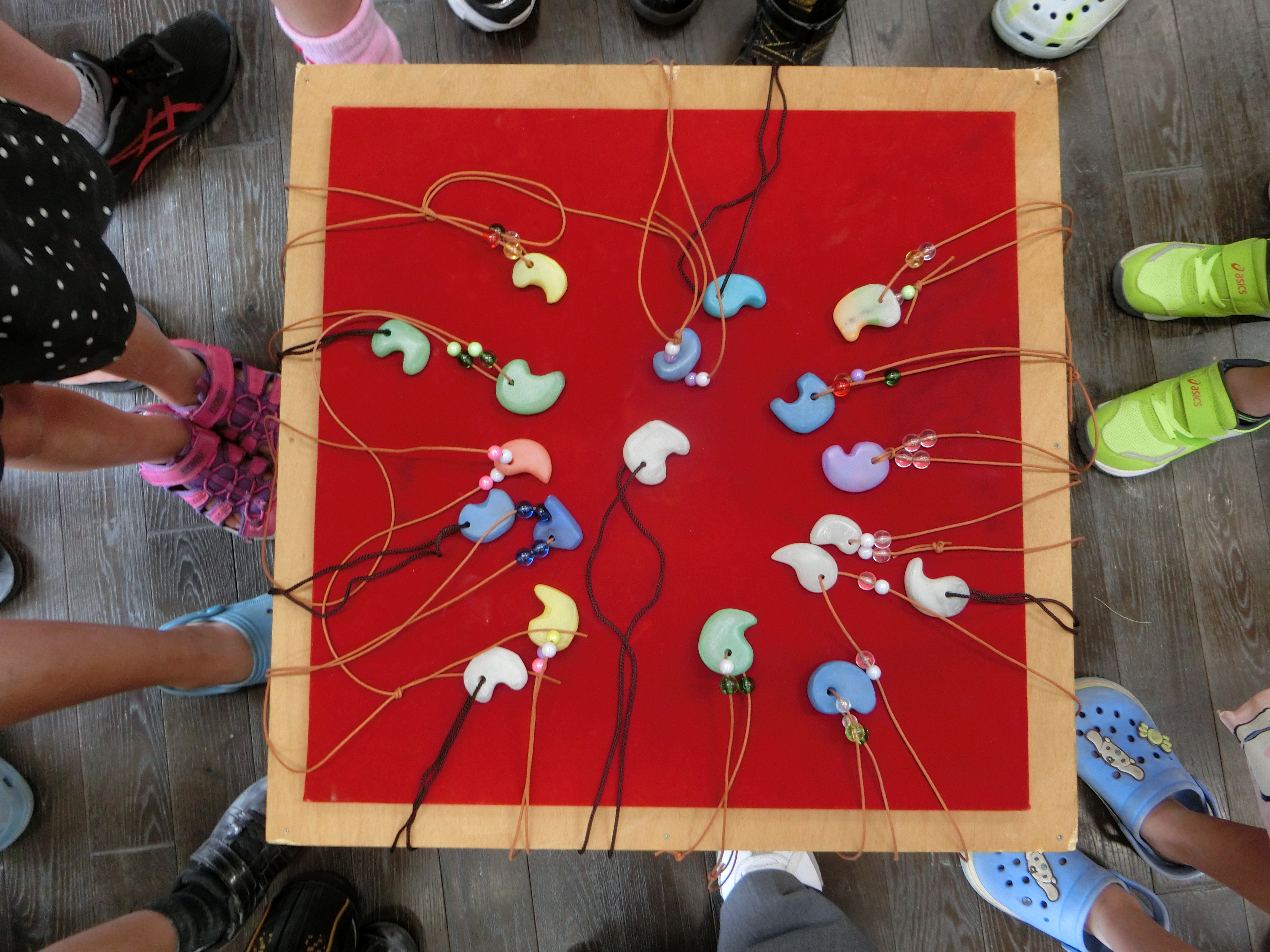 市内の小学校へ勾玉教室の出張授業を行ったり、地域の文化祭などでも勾玉講座として出展しているため、「勾玉は何回も作ってるよ!」というお友達もたくさんいました。