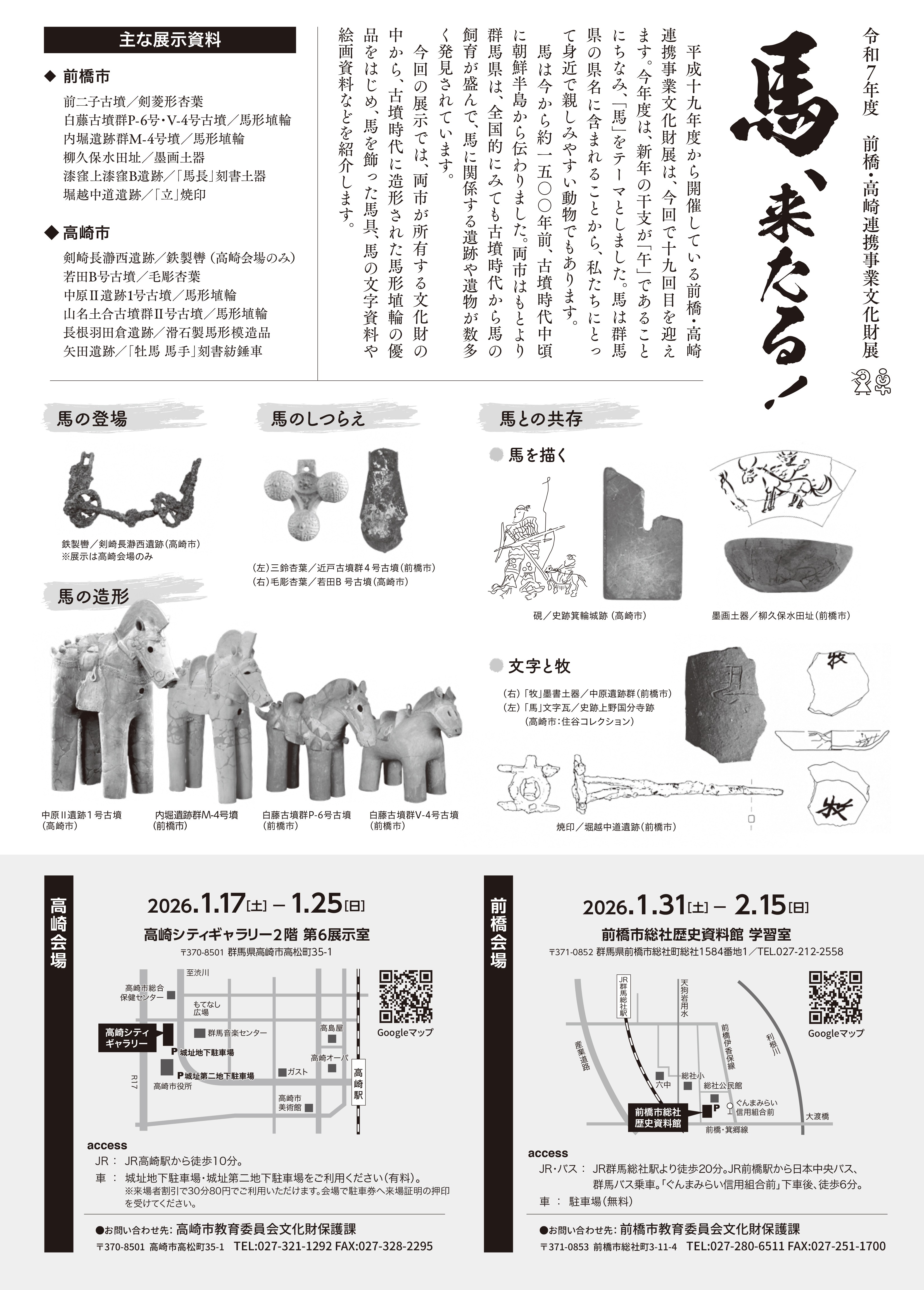 前橋・高崎連携事業文化財展は、両市出土の文化財を広く紹介する企画展です。