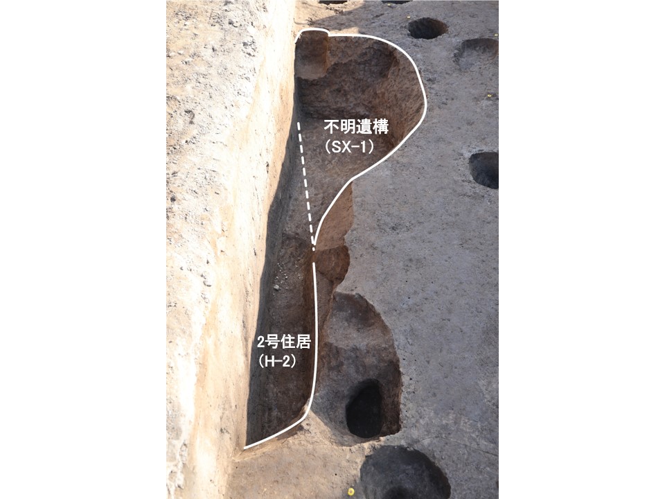 「不明遺構(SX-1)」は2号住居と重複して検出された遺構で、周溝が検出されました。