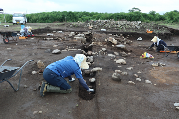 4区では、竪穴住居跡9軒、溝1条を検出しました。現在も表土の掘削作業中です。